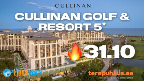 Oktoobris on suurepärane võimalus nautida viietärni mugavust CULLINAN GOLF & RESORT 5* hotellis eriti soodsate hindadega. See eksklusiivne kuurort asub Türgi südames, pakub kõrgetasemelist teenindust, gurmeerestorane, tipptasemel spaa-elamust ja muidugi ka unustamatut golfielamust. Väljumine 31.10.2025 - 7 öödultra kõik hinnasSuperior tuba 2018€/inSuperior tuba swim up 2260€/inLagoon Golf Swim Up 2465€/inLagoon Beach Swim Up 2670€/in BRONEERIDA Lisainfo ja broneerimine ☎️ +372 564 64 873 📧info@terepuhkus.ee